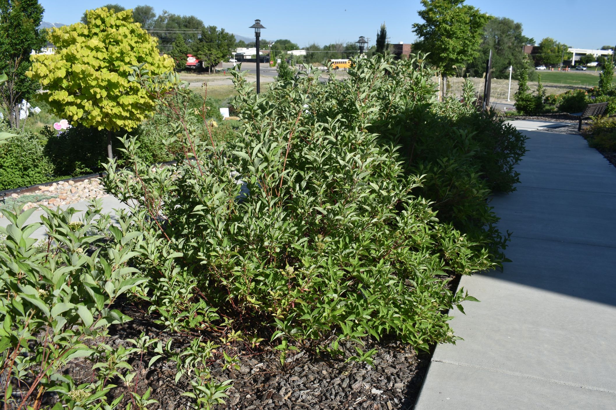 Plant Description: This is a compact shrub with a rounded habit. It is smaller than other dogwoods which makes it ideal for smaller gardens and residential landscapes. The foliage is a dark shade of green with white blossoms coming on in the summer. As the weather cools, the stems will start to turn a beautiful dark red and will provide interest all winter long. The species, Cornus stolonifera, is synonymous with C. sericea and is native to Utah.